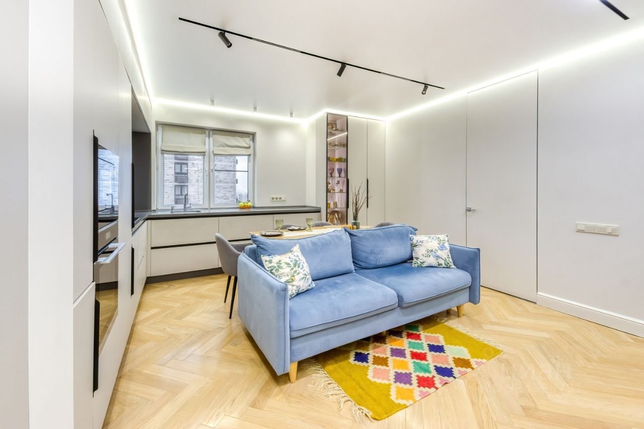 В квартире выполнен дизайнерский ремонт с использованием качественных материалов. Просторная кухня площадью 26 кв. м станет любимым местом для семейных обедов и встреч с друзьями у камина. В квартире есть все необходимое для комфортного проживания: современная мебель и техника, скрытая, очень вместительная система хранения, совмещенный санузел выполнен в актуальном стиле установлены стиральная и сушильная машины.