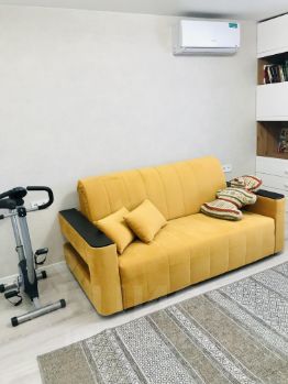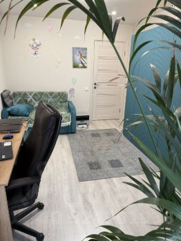 Ремонт ЕВРО, капитальный, выровнены стены, наливной пол, подвесной потолок с точечным освещением, новые батареи, окна, двери, проводка и все полностью новое. Много розеток.