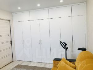 Огромный встроенный шкаф в комнате 22 м2, много шкафов вообще, большой стол встроенный над подоконником.