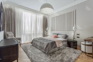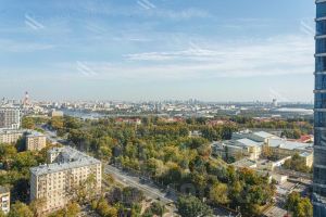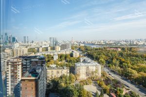 Квартира имеет панорамные окна в пол, дарящие великолепные виды на Москву, реку, Лужники и памятники Парка Победы.