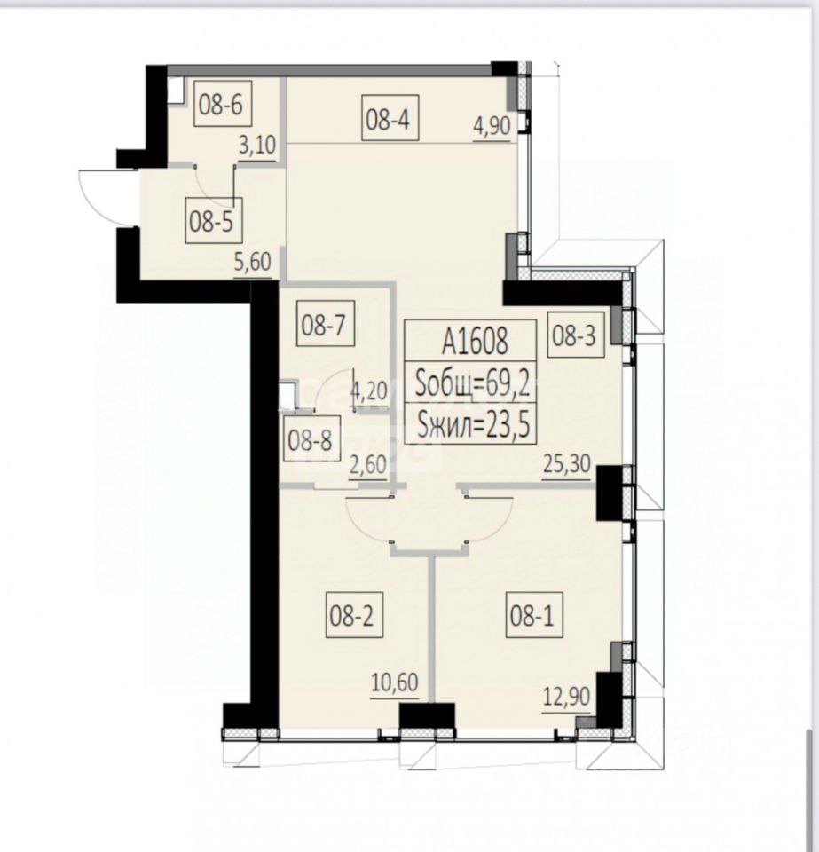 Арт. 114972891 Продаётся 2-комнатная квартира 69,2 м² в небоскрёбе "Эльбрус"
