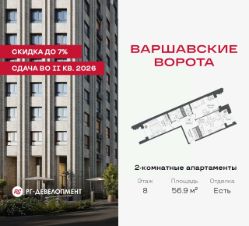 Продаются 2-комнатные апартаменты 56.9 кв.м. в МФК "Варшавские ворота" на 8-м этаже 9 этажного дома. МФК "Варшавские ворота" — это точка баланса между природой и городом, стилем и функциональностью, жизнью сегодня и устойчивым будущим.
