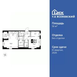 Продаётся 2-к квартира номер 113 общей площадью 56.3 кв.м. на 18-м этаже 18 этажного здания. Без отделки. Цена с учётом скидки.