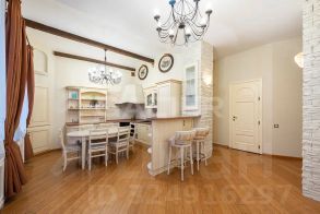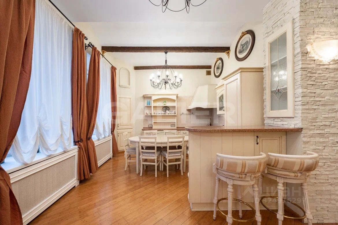 В зоне кухне находится уникальная ниша, предусмотренная исторической планировкой дома, которую можно использовать как винный шкаф. Так же на кухне сохранен оригинальный сводчатый потолок.