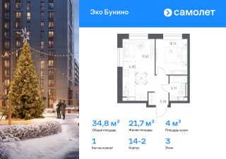 Строим кварталы для жизни с заботой о будущем. Предлагается 1-комнатная квартира комфорт-класса 34,83 кв.м в корпусе 14-2 на 3 этаже, в ЖК "Эко Бунино"