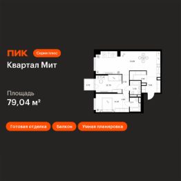 Продаётся 2-комн. квартира площадью 79,04 кв.м на 5 этаже 32 этажного дома (Корпус 3.4, Секция 4) проекта ПИК Квартал Мит. Светлый просторный подъезд на уровне земли, функциональная планировка, большие окна, c отделкой.