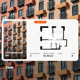 Продаётся 2-комн. квартира площадью 51,4 кв.м на 6 этаже 16 этажного дома (Корпус 2.1.2, Секция 2) проекта ПИК Середневский лес. Светлый просторный подъезд на уровне земли, функциональная планировка, большие окна, c отделкой.
