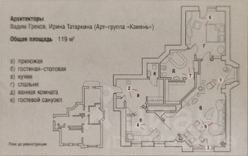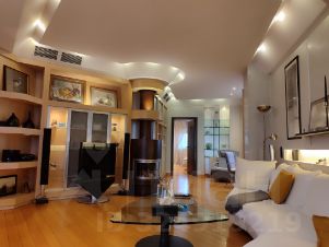 Уникальная квартира в современном кирпичном малоквартирном доме 1997 года постройки (в доме 15 квартир). Проект, отделка, дизайн, ремонт квартиры, а также изготовление мебели по собственным эскизам на собственном производстве проведены архитектурным бюро Камень, под руководством его основателя, знаменитого архитектора, Вадима Грекова. В планировке квартиры дизайнеры воплотили идею полукруглой анфилады в стиле хай-тек с элементами трансформинга, без привычного зонирования. В результате получилось единое, наполненное светом пространство, охватывающее кухню-столовую-гостиную-кабинет, которые объединены и одновременно обособлены благодаря изготовленным для этого авторским мебельным модулям. Центральным акцентом квартиры является дровяной круглый камин. В конце анфилады расположена изолированная просторная спальня с большой ванной комнатой, полностью оснащенной техникой, гардеробной комнатой и балконом. В квартире также предусмотрено техническое помещение с помывочной, что в том числе удобно при наличии домашнего питомца. Квартира смотрится очень стильно и неординарно. Она станет идеальным домом для одного человека или пары.