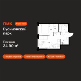 Продаётся 1-комн. квартира площадью 34,9 кв.м на 4 этаже 32 этажного дома (Корпус 22.1, Секция 1) проекта ПИК Бусиновский парк. Светлый просторный подъезд на уровне земли, функциональная планировка, большие окна, c отделкой.