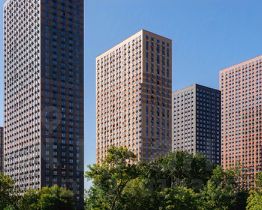Проект задуман небольшим и уютным - в нём будет всего 4 корпуса с переменной высотой: 28, 33 и 38 этажей с подземным паркингом. Не территории мы построим детский сад на 150 малышей и школу для 350 учеников. А во дворе - зелёный парк с детскими и спортивными площадками и зонами для отдыха. На первых этажах откроются магазины, кафе и другие сервисы.