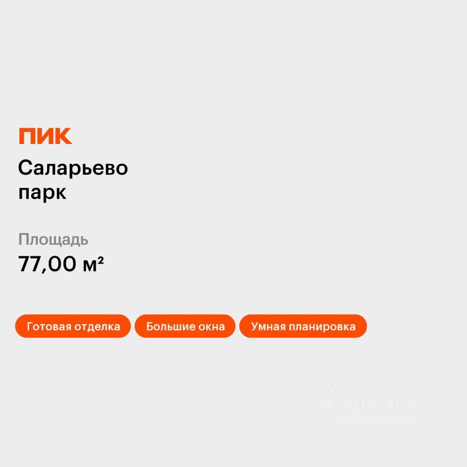 Продаётся 3-комн. квартира площадью 77 кв.м на 18 этаже 18 этажного дома (Корпус 74.6, Секция 6) проекта ПИК Саларьево парк. Светлый просторный подъезд на уровне земли, функциональная планировка, большие окна, c отделкой.