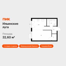 Продаётся 1-комн. квартира площадью 32,6 кв.м на 8 этаже 9 этажного дома (Корпус 2.8, Секция 3) проекта ПИК Ильинские луга. Светлый просторный подъезд на уровне земли, функциональная планировка, большие окна, c отделкой.
