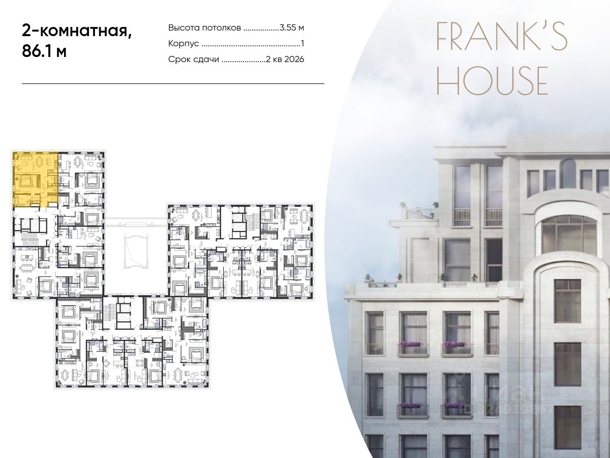 Продается двухкомнатная квартира в ЖК "Дом Франка" по адресу Москва, ЦАО, Мещанский, Большой Кисельный переулок, д. 11, корп. 3 Общая площадь квартиры - 86,10 кв.м., этаж 2. Стоимость квартиры - 161 474 493 р.