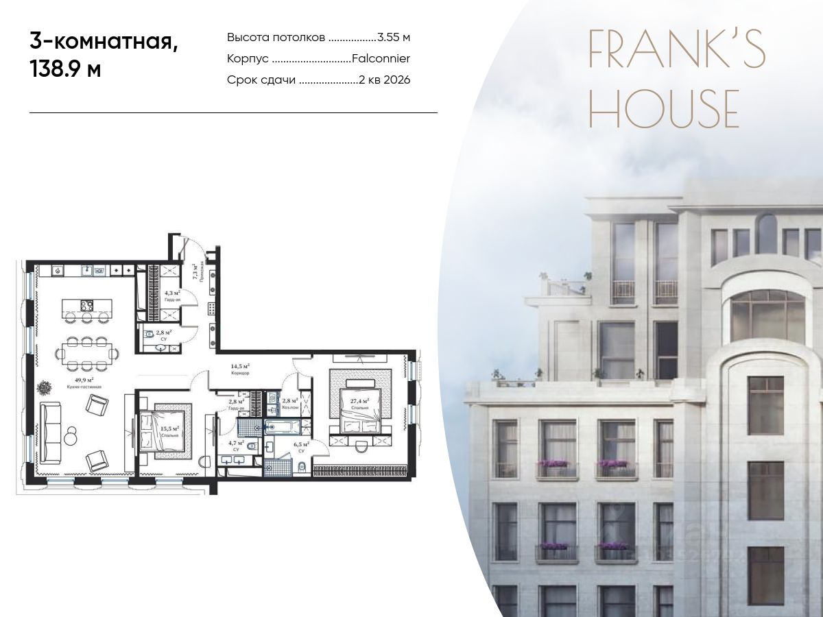 House Frank и абсолютное новое, современное трехсекционное здание House Falconnier. В центре архитектурной композиции проекта - приватный зеленый внутренний двор с ландшафтным дизайном. Всего в комплексе запланировано 147 премиальных резиденций, площадью от 63 до 263 кв. метров с возможностью объединения. На первых этажах расположены квартиры с частными палисадниками, обрамленными живой изгородью, верхние же этажи занимают просторные пентхаусы с простыми углубленными террасами и панорамным остеклением, дающие возможность любоваться историческими и культурными памятниками Москвы, не выходя из дома. Подземный паркинг жилого комплекса располагает достаточным количеством мест для удобного размещения ваших транспортных средств.