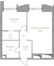 Представляем квартиру в клубном доме Хайлайн 3 с 1 спальней площадью 49,7 м² на 4 этаже.