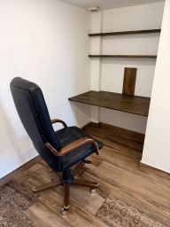 Рациональное зонирование: на антресольном уровне расположены уединенная спальня и ванная комната, на первом уровне — удобный кабинет, прихожая, санузел и вместительная кладовая. Высота потолков на антресоли и в помещениях под антресолью 2,1 м.
