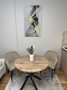 Кухня оборудована высококачественной техникой - варочной поверхность, духовым шкафом, посудомоечной машиной, вытяжкой и холодильником, а также великолепной обеденной группой и комфортными креслами.