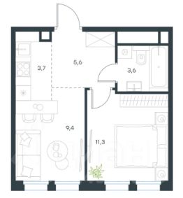 - 3,7 кв.м совмещенный санузел.