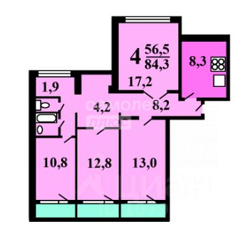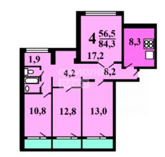 Арт. 127658558 Предлагаю вашему вниманию 4-комнатную квартиру, с 4-ми лоджиями, общей площадью 84,4 кв. м.