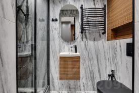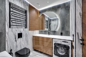 Стильная премиальная отделка с максимальным вниманием к высокому уровню жизни. На полу дубовый паркет - теплые полы под итальянской плиткой. Кварцевая столешница и натуральные подоконники из дуба. Мебель и двери из шпона, итальянская фурнитура и сантехника Villeroy&Boch. Вместительная система хранения изготовлена на заказ по индивидуальным размерам. Роскошь и эстетика - мебель Albert&Shtein.