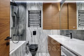В квартире продуманы технические детали: мультизональная система кондиционирования с очисткой воздуха индивидуально настраиваемая в каждой комнате, датчики протечки в санузлах и на кухне, трековое освещение с различными сценариями.
