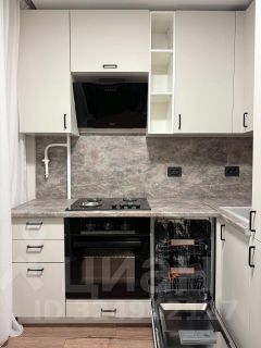 Кухня со встроенным гарнитуром, газовой плитой, электрическим духовым шкафом,