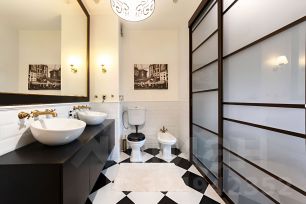 Квартира: (физически свободна). Общ. S= 141,4 кв.м. Жилая S=102,2 кв.м. Комнаты: (22,4+20,4+32,7+26,7).Окна на придомовую озеленённую территорию. Потолки - h=3,30 м. Кухня гостиная - 59,4 кв.м. (со всей необходимой техникой фирмы Gоrеnjе). Обеденная зона с большим столом на 6 персон отделена от зоны отдыха лёгкой перегородкой. Там же домашний кинотеатр, бар и винный холодильник. Просторная прихожая с большим гардеробом и постирочной комнатой. Два санузла, каждый из них оборудован ванной. Один в корридоре, второй в изолированной спальне 22,4 кв.м. Детская спальня расчитана на двух детей оборудована рабочей зоной, общая площадь комнаты 20,4 кв.м. При отделке квартиры использовалась декоративная плитка, нанесены авторские художественные рисунки в виде картин. По всей квартире выполнена многофункциональная подсветка с различными режимами освещения. В каждой комнате установлен кондиционер. Пол с подогревом и системой управления с настройкой разных режимов работы. По квартире размещены встроенные колонки с центральной системой управления. Фоном можно включать музыку по всей квартире. Ремонт делали для себя, квартира в отличном состоянии (фактически не жили).