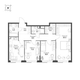 Продаётся 3-комнатная квартира в строящемся доме (Корпус 6.1 ( 4-я очередь)), срок сдачи: III-кв. 2028, общей площадью 78 кв.м., на 6 этаже. Это город в городе, который не подстраивается под старые рамки, а задает новую планку и стандарт жилого района в России.
