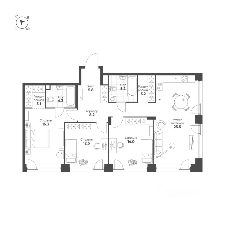 Продаётся 3-комнатная квартира в строящемся доме (Корпус 3 (4 очередь, 3 этап)), срок сдачи: III-кв. 2028, общей площадью 98.1 кв.м., на 4 этаже. Это город в городе, который не подстраивается под старые рамки, а задает новую планку и стандарт жилого района в России.