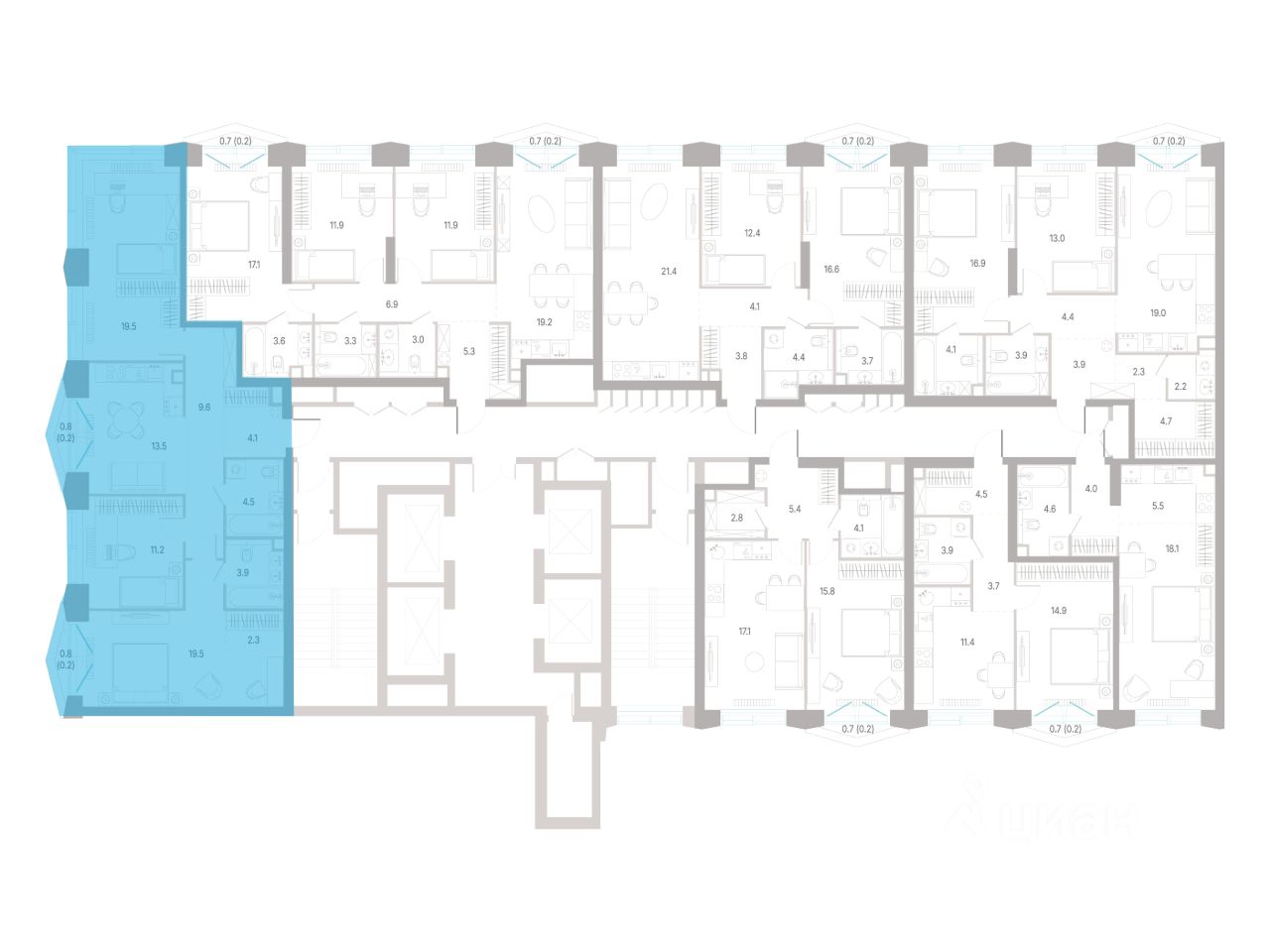 - 30% квартир - угловые. Увеличенные оконные проемы, панорамное остекление и продуманное расположение комнат усиливают эффект обзорности: гостиные и спальни получают максимум дневного света и живописные виды, которые становятся частью интерьера;