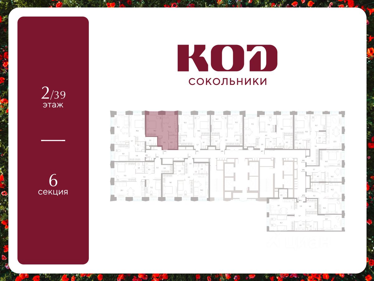 В семейном жилом квартале, расположенном в окружении более 500 га леса и объектов исторического наследия, продается 1-комнатная квартира площадью 35.5 кв. м без отделки. Квартира расположена на 2 этаже 39-этажного корпуса 2.2 жилого квартала бизнес-класса КОД Сокольники от девелопера Новая Эра.