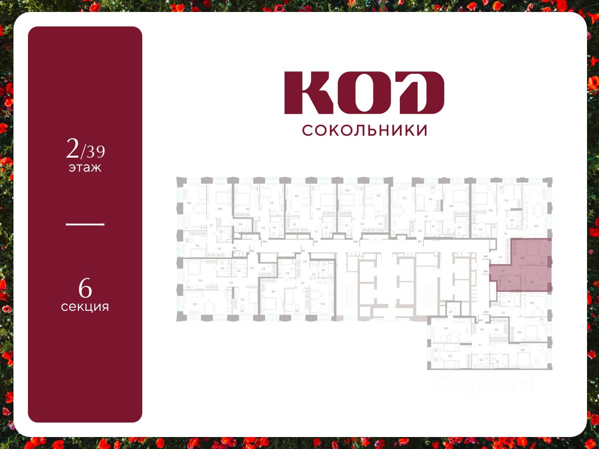 В семейном жилом квартале, расположенном в окружении более 500 га леса и объектов исторического наследия, продается 1-комнатная квартира площадью 34.8 кв. м без отделки. Квартира расположена на 2 этаже 39-этажного корпуса 2.2 жилого квартала бизнес-класса КОД Сокольники от девелопера Новая Эра.