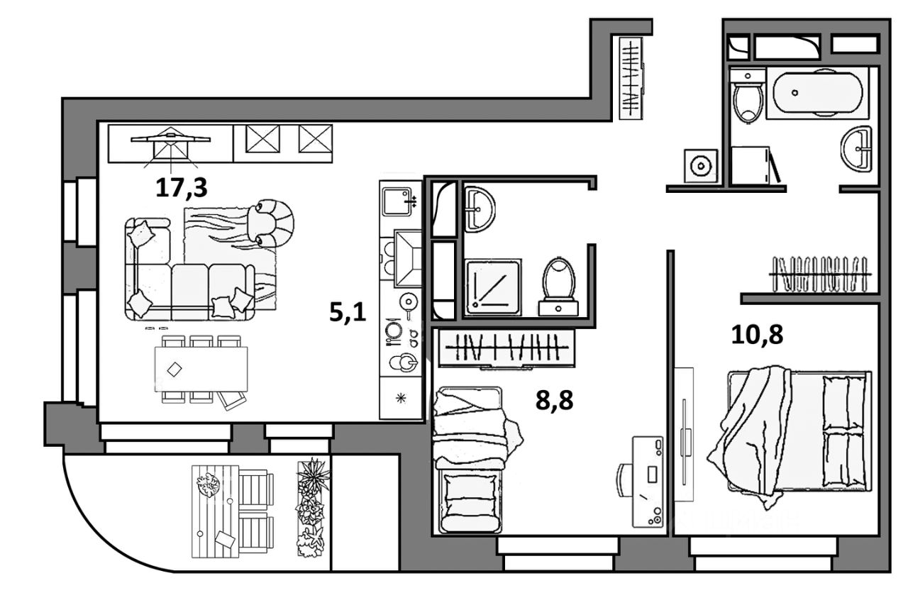 В жилом комплексе Родина Парк предлагается трехкомнатная квартира без отделки. Планировка: кухня-гостиная-столовая с лоджией, мастер спальня с собственной гардеробной и ванной комнатами, вторая спальня, дополнительная ванная комната. Из окон квартиры открывается вид в сторону центра, на заказник Долина реки Сетунь и в благоустроенный внутренний двор. Есть возможность объединения с соседней квартирой.