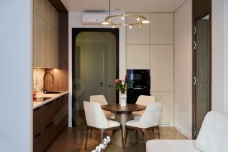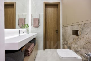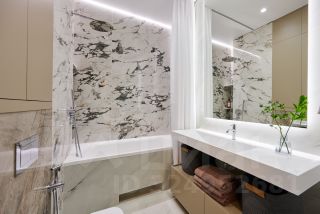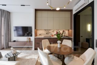 Квартира полностью меблирована и оснащена современной техникой, теплые полы, центральное кондиционирование — всё готово к комфортному проживанию.