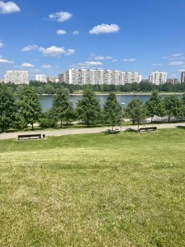 Экологически чистый район: сразу напротив дома находится красивая благоустроенная парковая зона, которая ведет к Борисовским прудам, также рядом облагароженная, зеленая и очень красивая набережная реки Москвы.