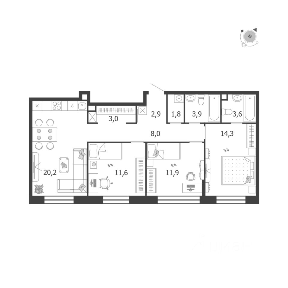 Продаётся 3-комнатная квартира в строящемся доме (Корпус 6 (3 очередь)), срок сдачи: IV-кв. 2026, общей площадью 81.2 кв.м., на 19 этаже. Это город в городе, который не подстраивается под старые рамки, а задает новую планку и стандарт жилого района в России.