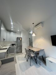 Уютная спальная комната и просторная кухня-гостиная с выходом на лоджию. Не требует никаких дополнительных вложений, заезжай и живи! Ремонт выполнен их качественных материалов, есть вся необходимая мебель и техника.