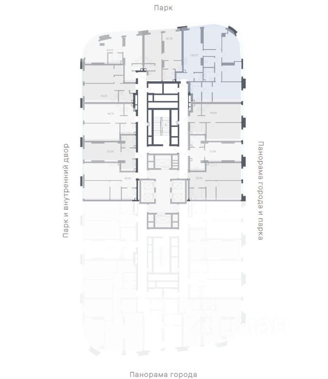 Высота потолков — 3,2 метра, большие окна в пол. В квартирах предусмотрены инженерные решения для акустического комфорта и чистый воздух благодаря близости парка и современным системам вентиляции.
