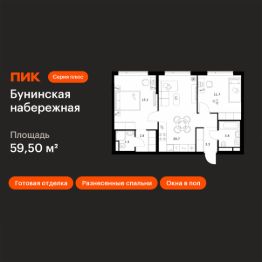 Продаётся 2-комн. квартира площадью 59,5 кв.м на 15 этаже 16 этажного дома (Корпус 2.6/1.1, Секция 1) проекта ПИК Бунинская набережная. Светлый просторный подъезд на уровне земли, функциональная планировка, большие окна, c отделкой.