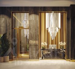 Просторное гранд-лобби с высотой потолка 7м. Дизайн Гранд Лобби выполнен в стиле классических люксовых отелей с использованием премиальных материалов.