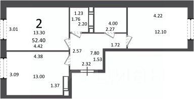 2-комн. кв., 52,4 кв.м