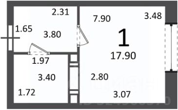 1-комн. кв., 17,9 кв.м