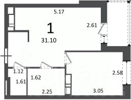 Продается квартира, по адресу г. Москва, ул. Яворки, дом 1, корпус 6, квартира 198, городской округ Троицк, удобное расположение относительно метро Ольховая. Общая площадь составляет 31,1 м², в том числе кухня 8,4 м² и жилая площадь 17,1 м². Количество комнат 1, расположена на 4 этаже из 17.