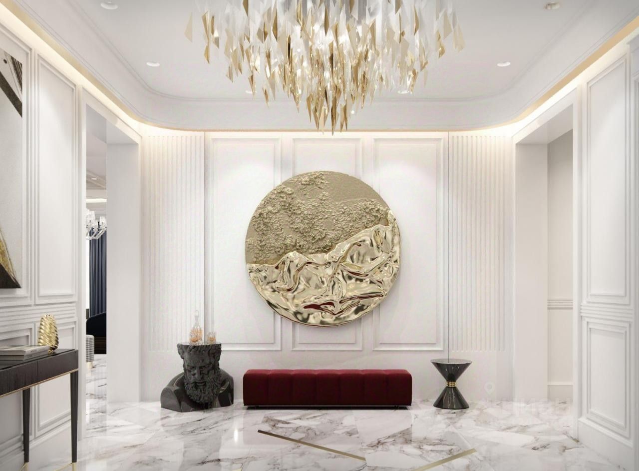 Каждая деталь продумана: декоративные молдинги из гипсовой лепнины ручной работы, изящные карнизы, многоуровневые потолки, благородные фактуры керамогранита и дерева создают идеальную гармонию света, фактуры и пространства.