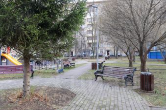 Добротный сталинский дом 1956 года постройки после капремонта с заменой всех центральных коммуникаций. Добропорядочные интеллигентные соседи. В подъезде идеально чисто. Просторные лестничные марши. Пассажирский лифт. Благоустроенная придомовая территория с детской и спортивной площадками, большой парковкой. Во дворе уютный сквер - излюбленная площадка местных жителей для прогулок и отдыха.