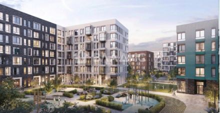 Жилой комплекс в окружении лесопарков и рядом с рекой. До станции МЦД-4 "Санино" можно дойти пешком за 7 минут, а на территории проекта появится транспортно-пересадочный узел с торговым центром. Для жителей построят школу, 2 детсада, в одном из которых будут развивающие кабинеты-трансформеры.