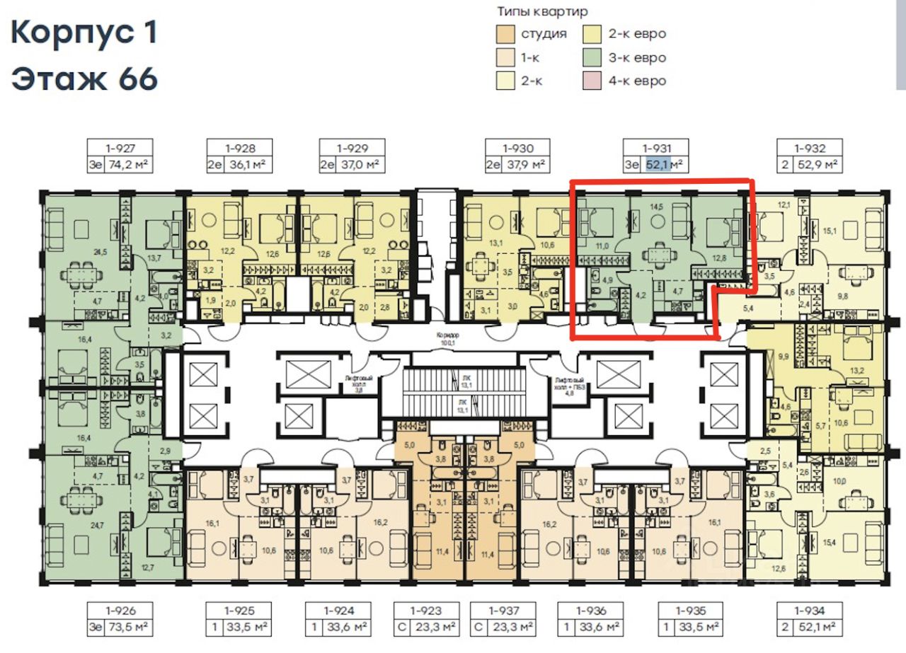 3. ВАЖНО. Соседний корпус низкий, вид с 66го этажа открывается роскошный (не окна в окна)