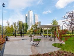 - Площадка для воркаута прямо перед входом в спортивный зал помогает разнообразить физическую активность.