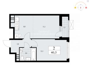 Арт. 127737231 Продается по переуступке Евро 2х комнатная квартира, площадью 40,5 м2. в доме бизнес класса!