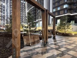 Этот дом - один из самых больших и зеленых дворов в квартале, в центральных лобби - потолки 6 м, футуристичный интерьер, авторская мебель, "парящие" биокамины, панорамные видовые лифты с индивидуальным дизайном.